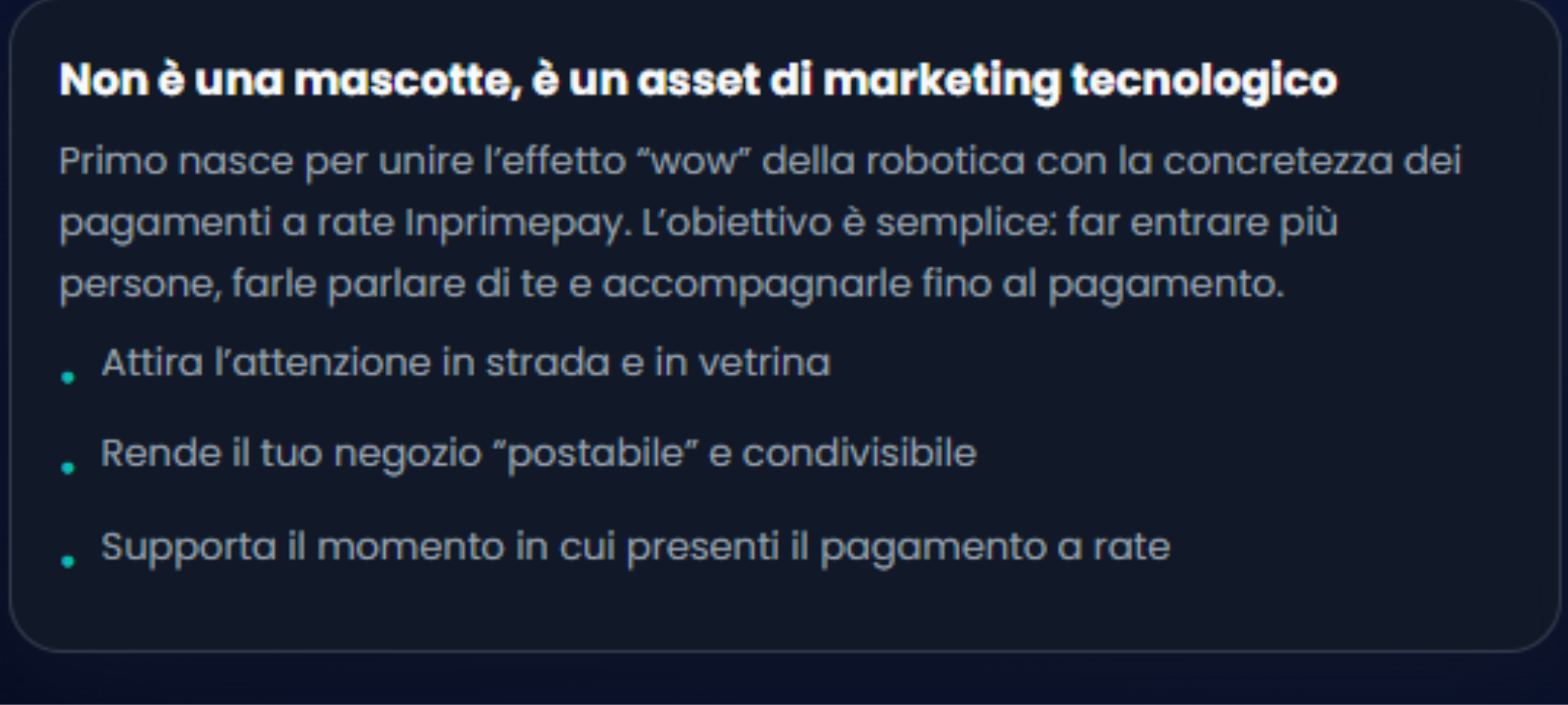 Robotica reale + pagamenti a rate Inprimepay: più persone che entrano, più contenuti che circolano, più
