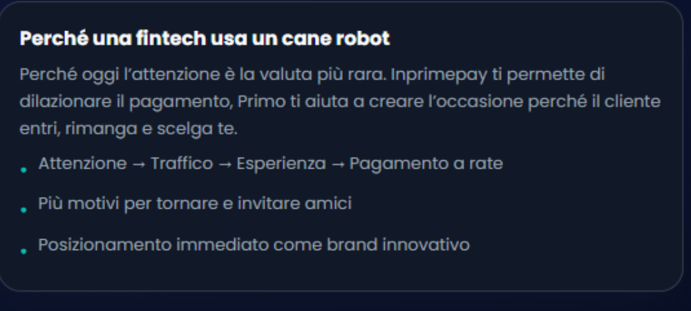 Il cane robot di Inprimepay che trasforma attenzione in vendite